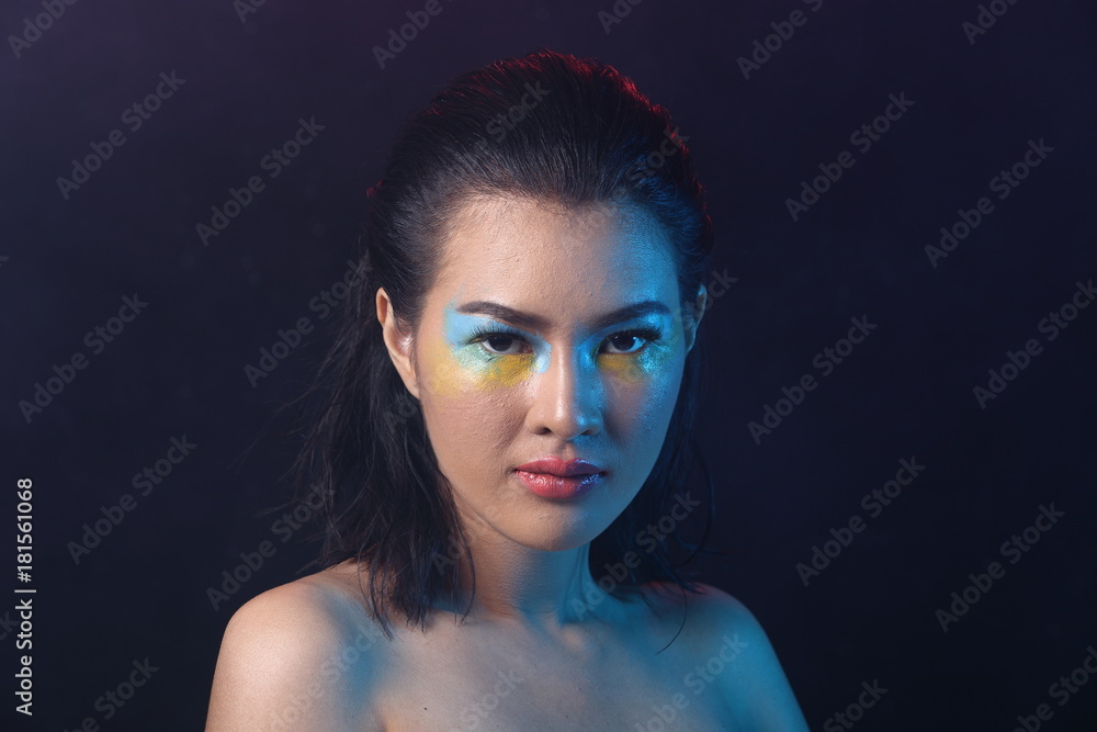 Sexy Asian Woman Black Hair Color Eyeshadow Blue Yellow Stock Photo Adobe Stock
